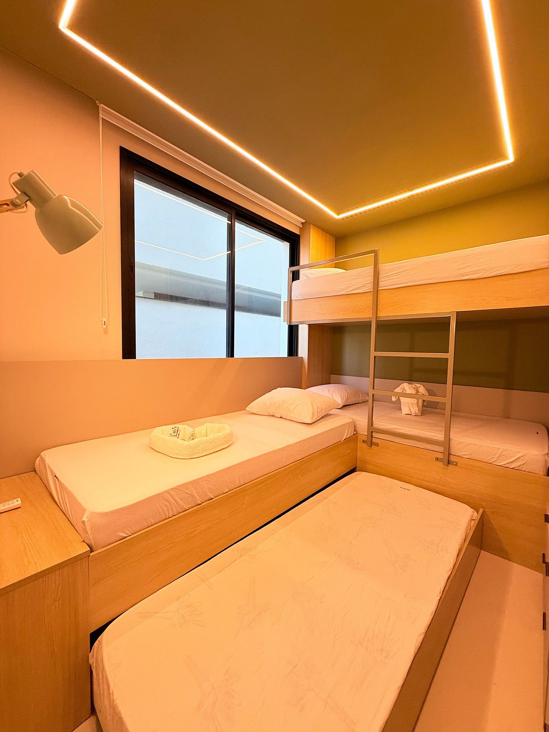 • Um segundo quarto com quatro camas de solteiro, ideal para crianças, amigos ou outros familiares.