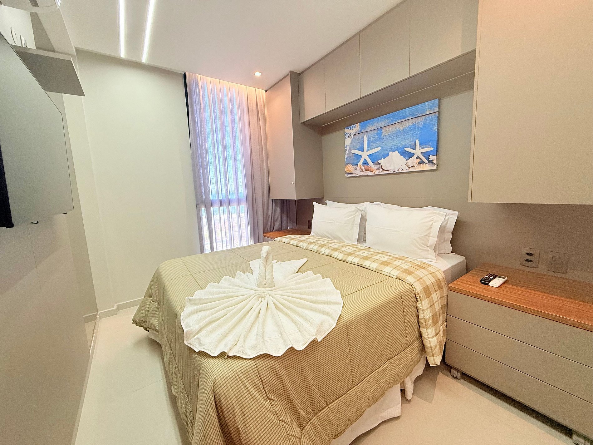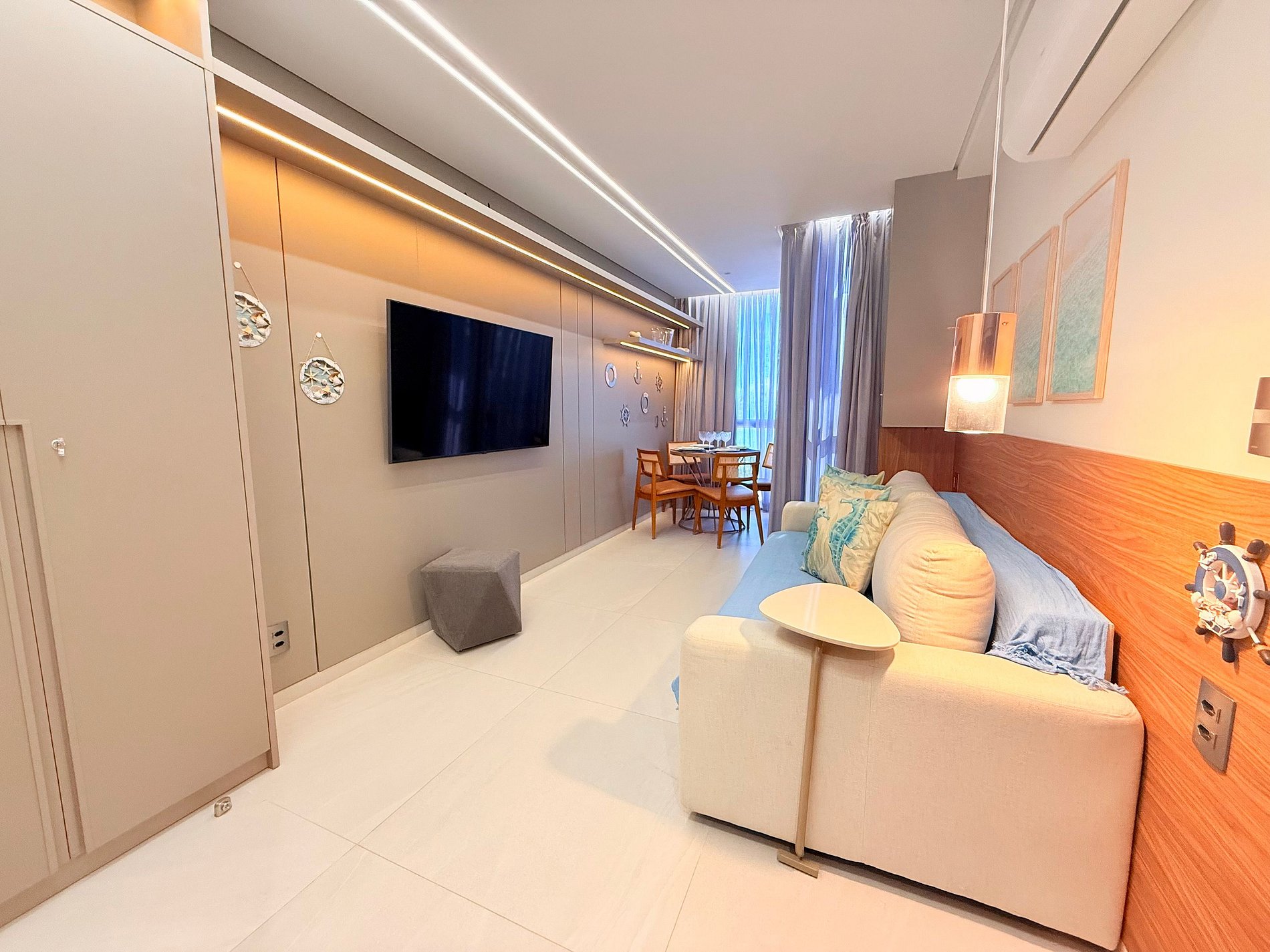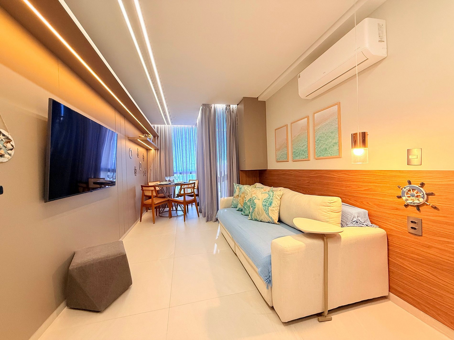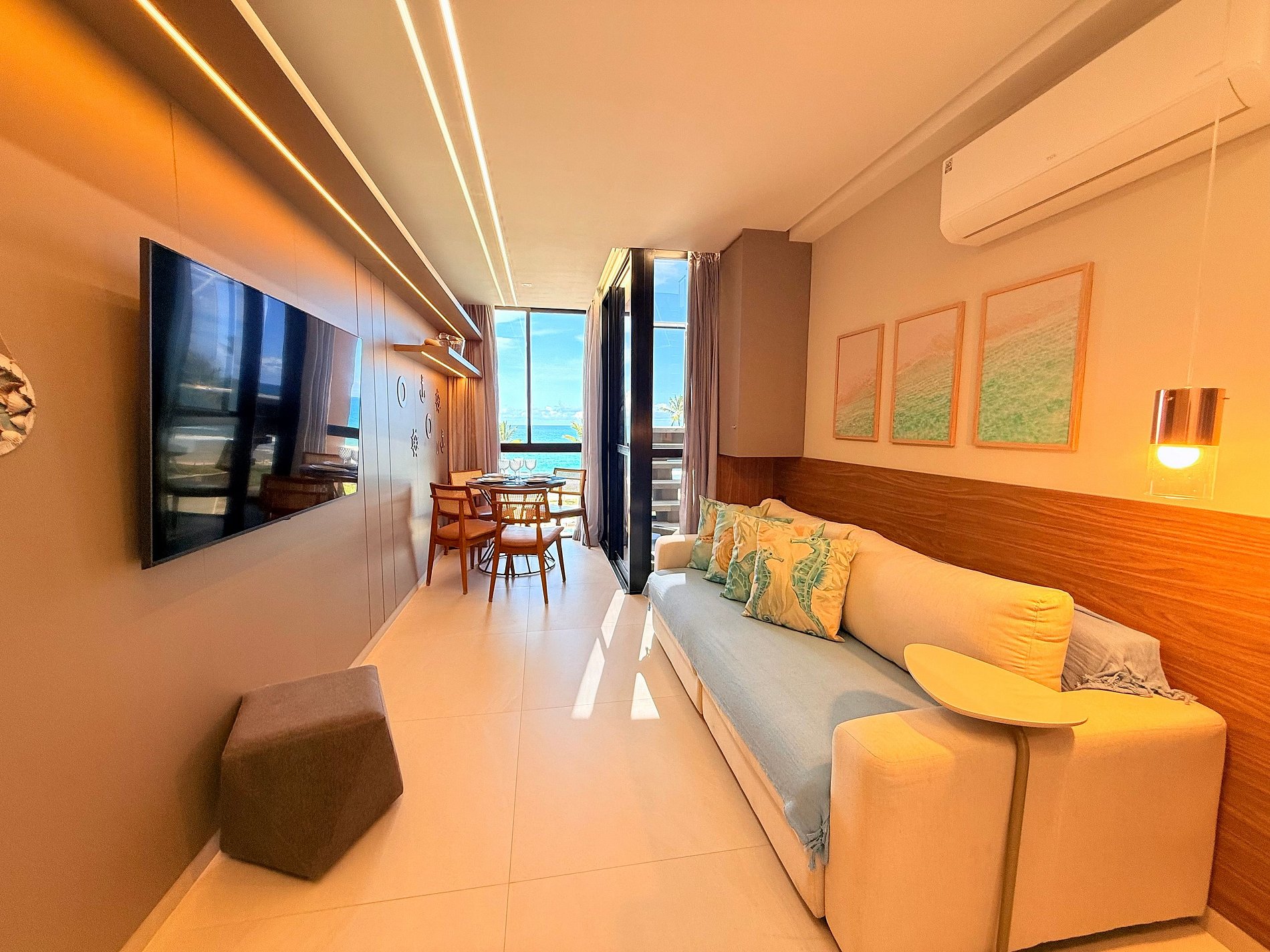Rooftop exclusivo, planejado para oferecer conforto, estilo e privacidade em cada detalhe. A acomodação conta com um quarto elegante com vista para o mar e cama queen size. A sala de estar, aconchegante e versátil, pode ser transformada em um segundo ambiente para dormir, com sofá-cama de casal. Cozinha totalmente equipada e ambientes climatizados garantem conforto em qualquer época do ano. No rooftop privativo, você encontra:• Piscina exclusiva • Espaço amplo com mesa para reunir família e amigos • Área de lazer ideal para churrascos • Estrutura com cobertura, geladeira e banheiro