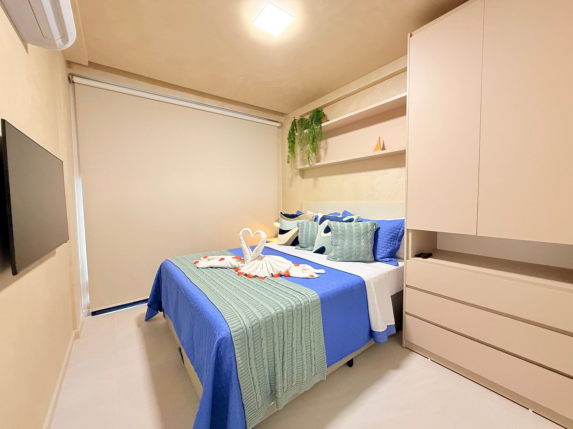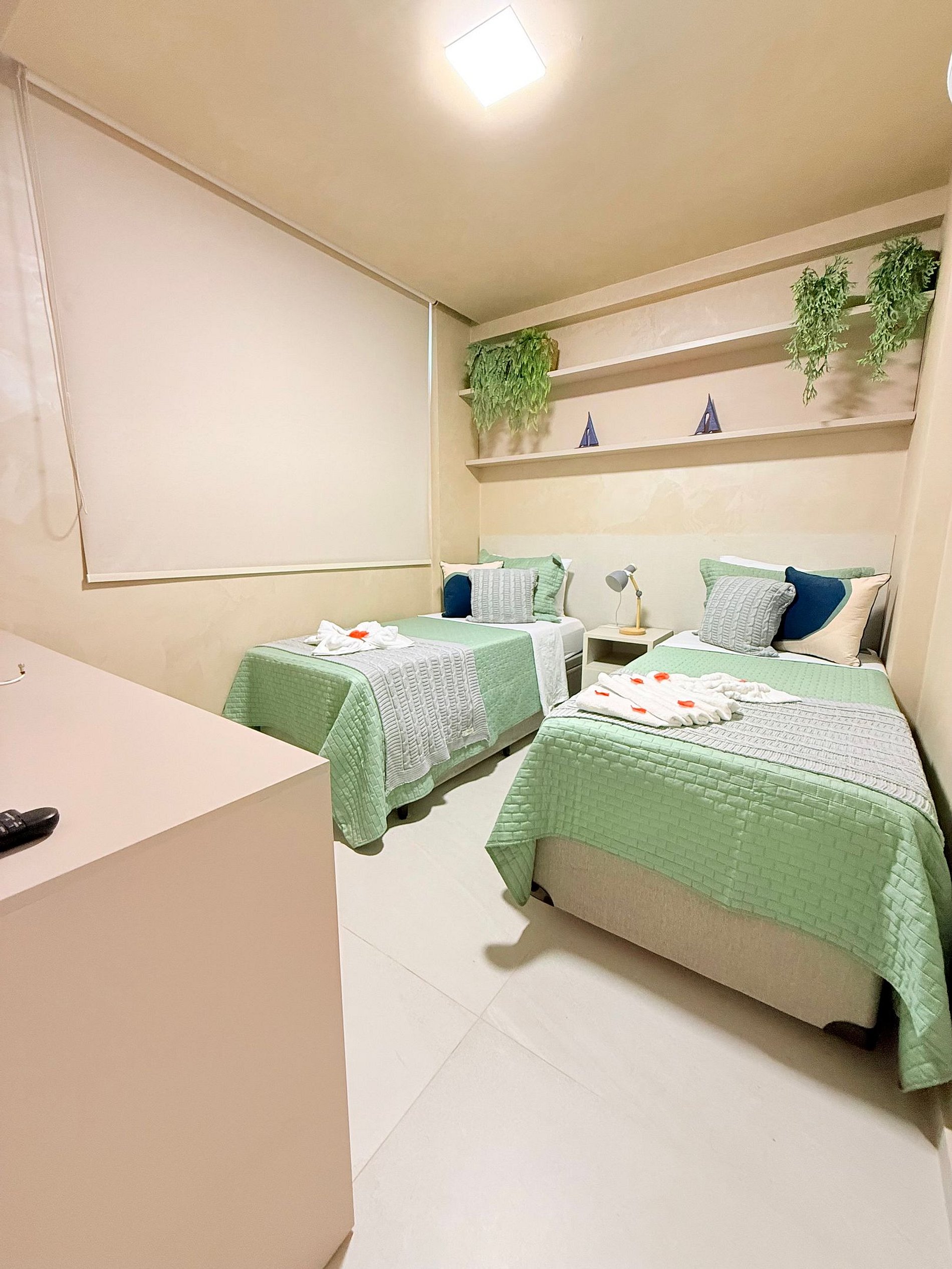 Este apartamento de dois quartos, localizado dentro do Resort Beira Mar, é o lugar ideal para quem busca conforto, praticidade e um ambiente elegante à beira-mar. Acomoda até seis pessoas com total comodidade, em um espaço novo, moderno e cuidadosamente decorado com móveis de primeira linha.