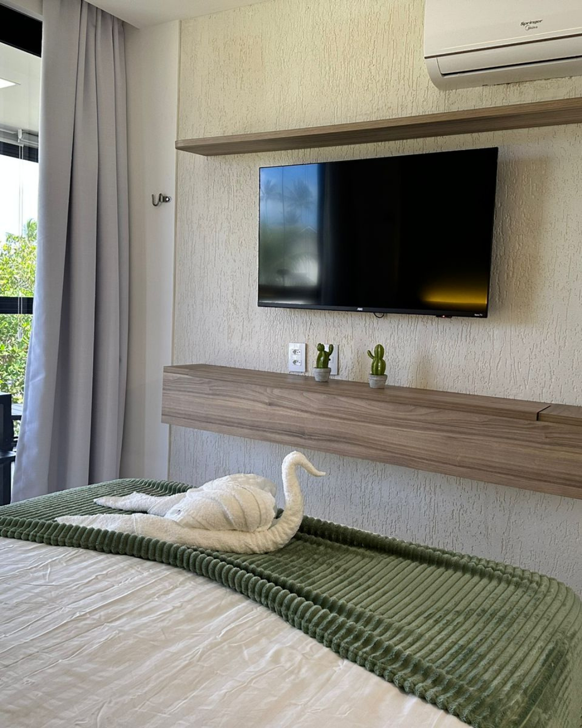 Desfrute de dias inesquecíveis em um charmoso apartamento localizado dentro de um resort pé na areia, com estrutura completa de lazer, segurança e muito conforto. O espaço acomoda até 8 pessoas, ideal para famílias ou grupos de amigos que querem relaxar com estilo à beira-mar. O apartamento conta com 1 quarto com cama queen size, 1 quarto com duas camas de solteiro tipo bicama (acomoda até 4 pessoas) e sala com sofá-cama confortável para 2 pessoas. A cozinha é equipada e a decoração é vibrante e acolhedora, com arte regional que traz vida ao ambiente. Há ainda uma varanda com vista para a natureza e proximidade do mar. Os hóspedes têm acesso a toda a infraestrutura do resort: piscina, restaurante, bar, academia, e muito mais. Ideal para quem busca conforto, praticidade e contato com a natureza em um só lugar.