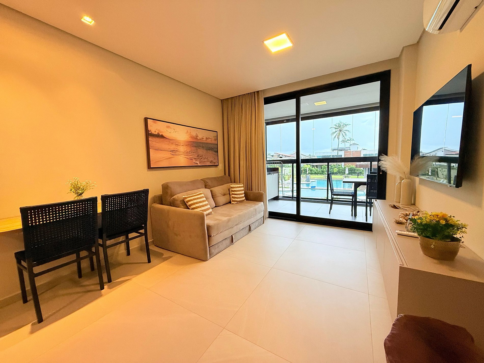 Ideal para famílias ou pequenos grupos, o apartamento proporciona uma estadia tranquila, com acesso à estrutura completa do resort: piscina, restaurante, áreas de lazer e, claro, o privilégio de estar com os pés na areia.