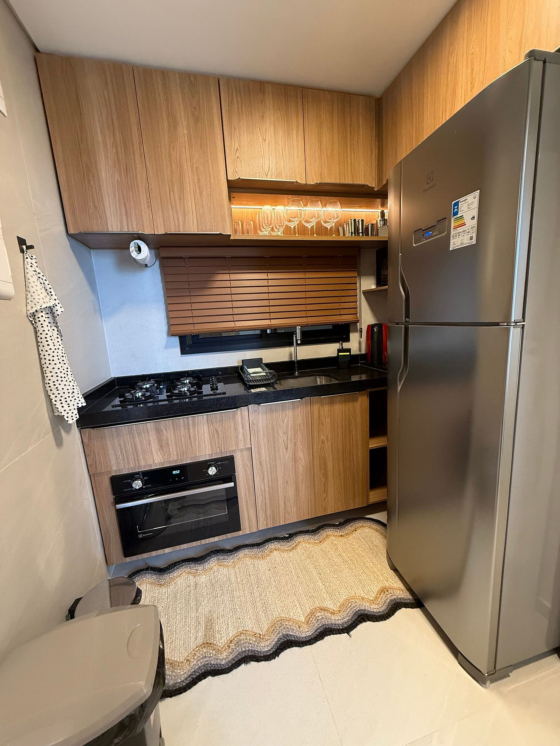 A cozinha é moderna e completa, equipada com utensílios e eletrodomésticos para que você se sinta em casa — seja para preparar um café rápido ou um jantar especial.