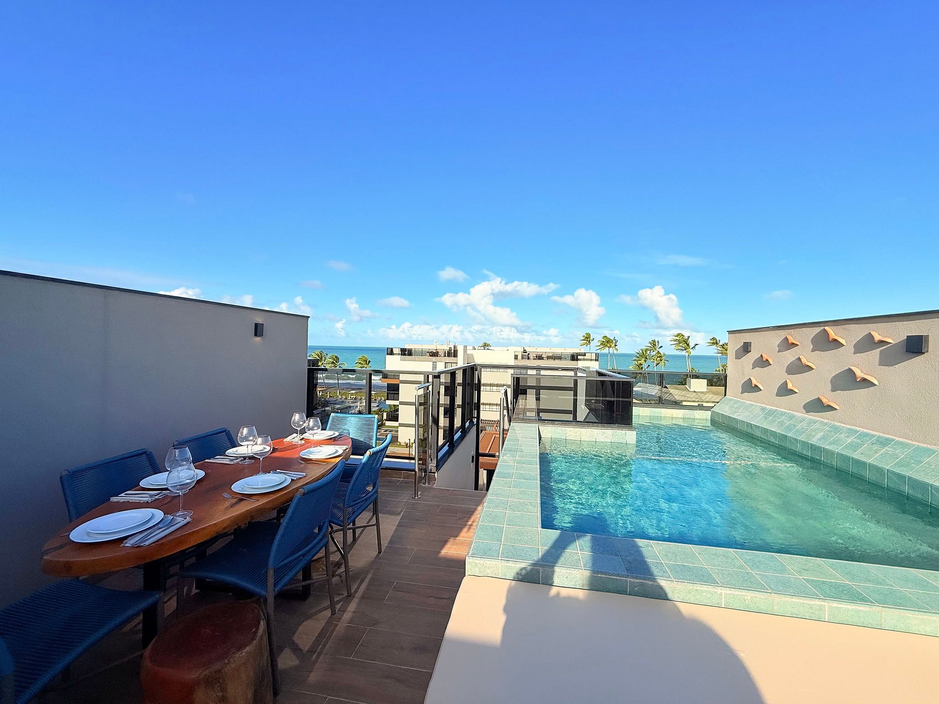 Este rooftop foi pensado nos mínimos detalhes para oferecer conforto, privacidade e uma experiência inesquecível à beira-mar.