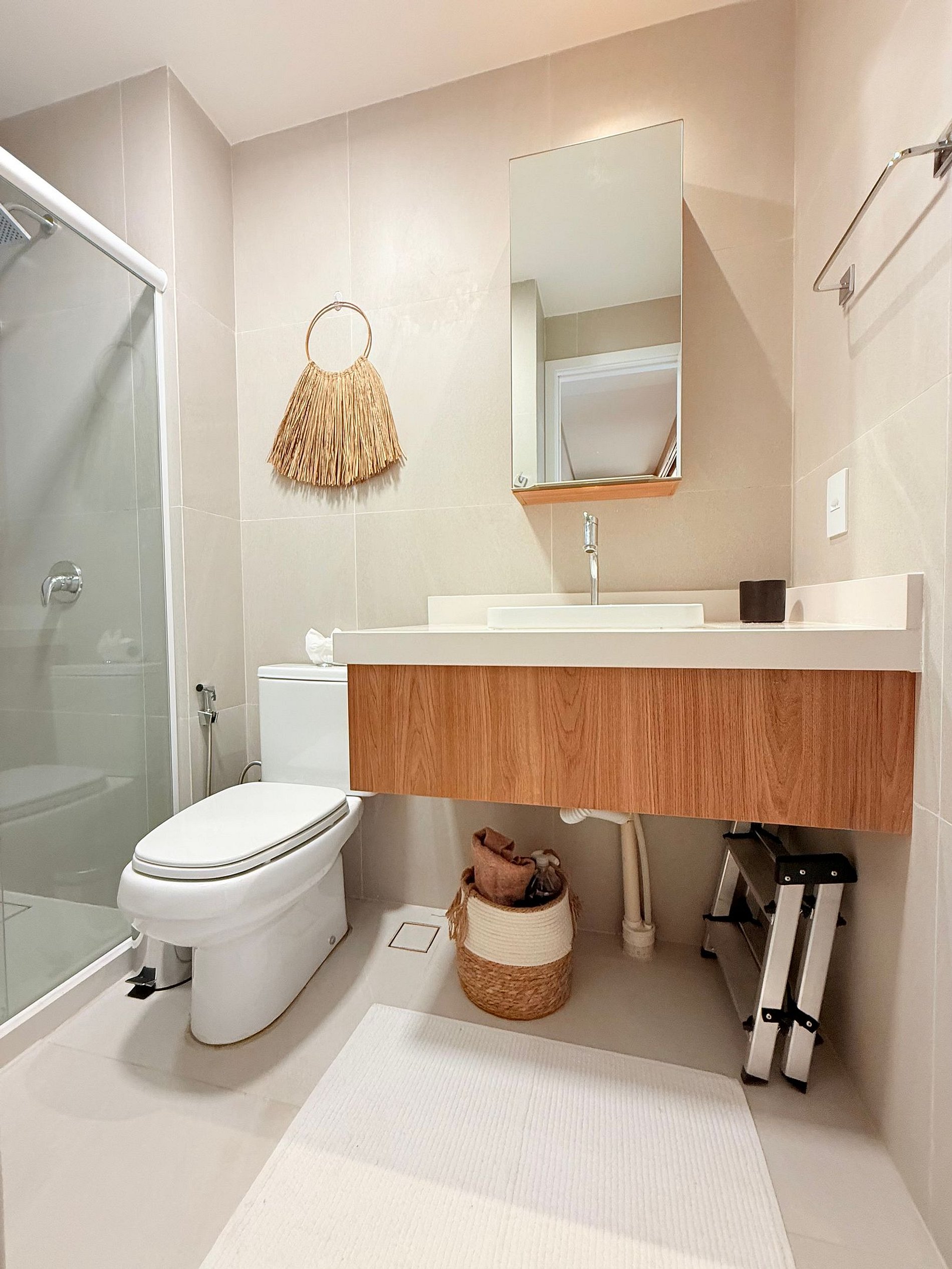 O grande destaque é o rooftop privativo, com piscina exclusiva, mesa ampla, espaço para churrasco e guarda-sóis — ideal para curtir com estilo e liberdade.
