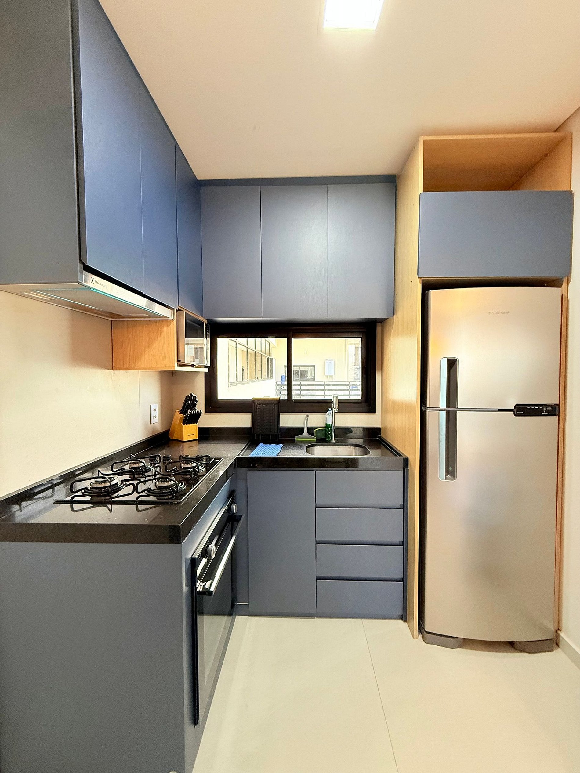 A cozinha é totalmente equipada com todos os utensílios necessários para sua estadia, além de eletrodomésticos modernos, tudo organizado para oferecer funcionalidade e conforto.