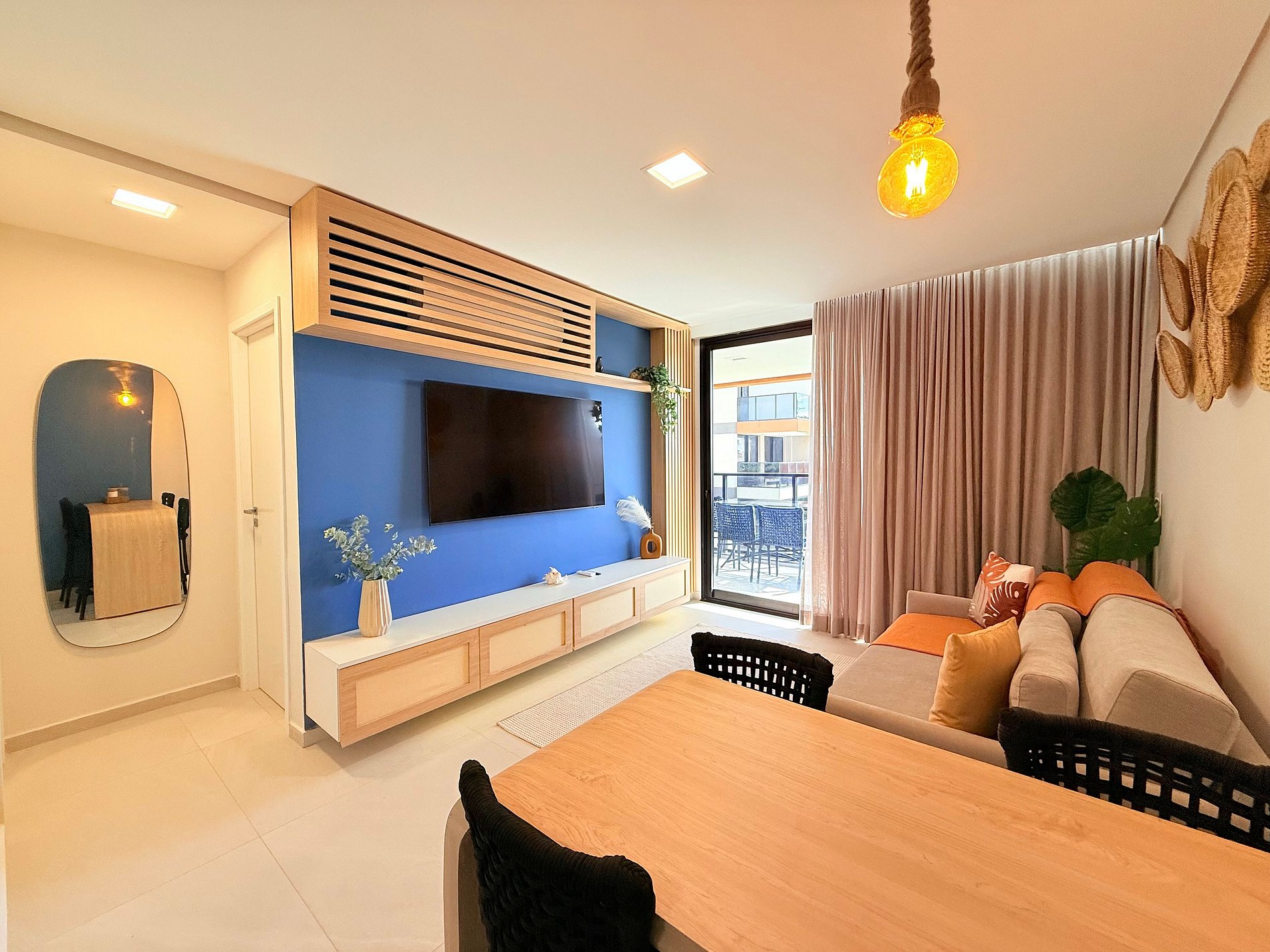 Este apartamento de dois quartos, localizado dentro do Cais Eco Residencia Beira Mar, é o lugar ideal para quem busca conforto, praticidade e um ambiente elegante à beira-mar. Acomoda até seis pessoas com total comodidade, em um espaço novo, moderno e cuidadosamente decorado com móveis de primeira linha. O apartamento proporciona uma estadia tranquila, com acesso à estrutura completa do resort: piscina, restaurante, áreas de lazer e, claro, o privilégio de estar com os pés na areia.