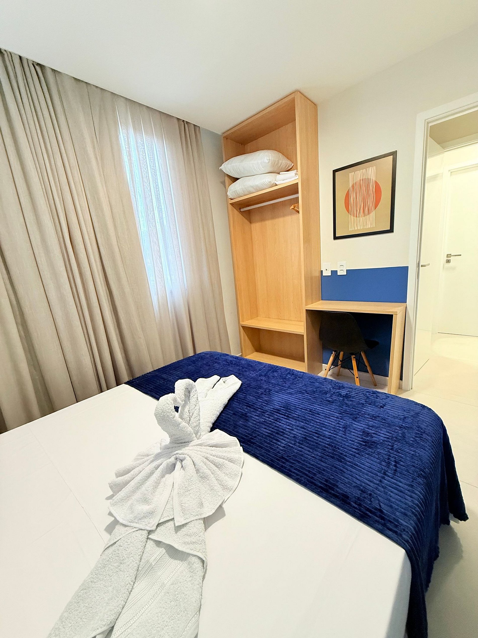 Este apartamento de dois quartos, localizado dentro do Resort Beira Mar, é o lugar ideal para quem busca conforto, praticidade e um ambiente elegante à beira-mar. Acomoda até seis pessoas com total comodidade, em um espaço novo, moderno e cuidadosamente decorado com móveis de primeira linha.